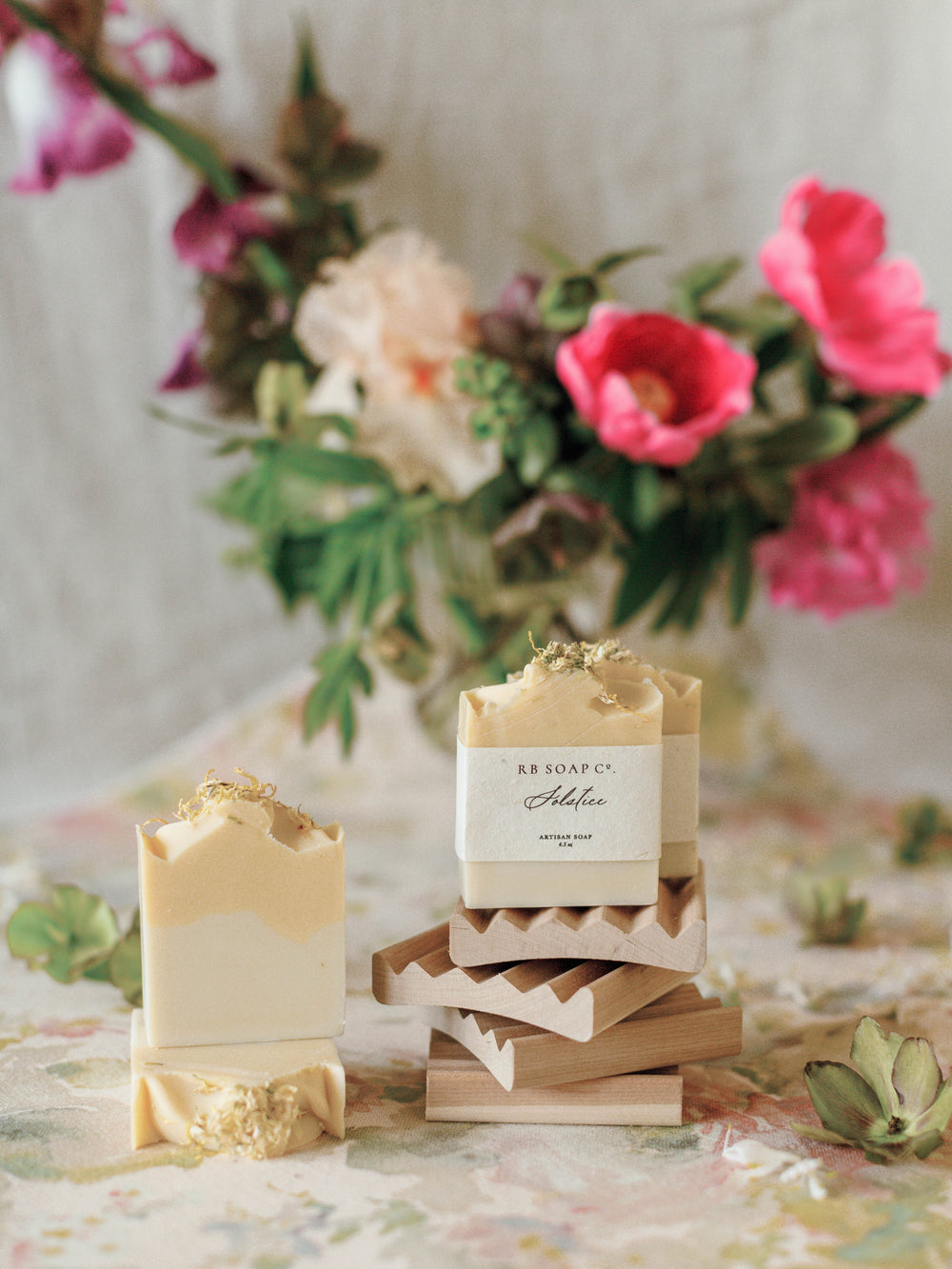 Please note that not every soap bar is topped identically to what is shown in the photos. While we do our best to make every bar equally as beautiful sometimes our petal toppings get cut or crushed in the cutting, wrapping, and shipping process.
