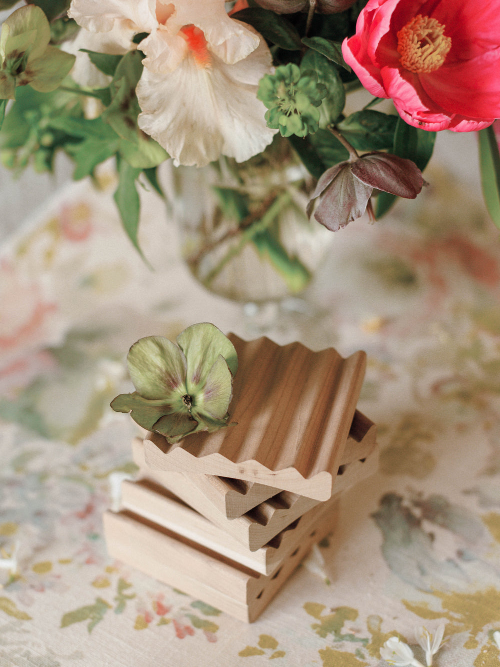 Our luxurious cherry wood soap dishes are handmade by a talented woodworker in Oregon using a proprietary design meant to prolong the life of your cold process soap bar. With minimal surface area to allow water to quickly drain from the soap and a slightly bowed bottom keeping your dish out of water pools, this dish is a beautiful way to offer form and function to your soap experience. Each dish measures 3.5x3.5 inches making it the perfect fit for our square soap bars. For added gift-giving measure we offer a kraft gift box option to perfectly enclose your soap and dish bundle!